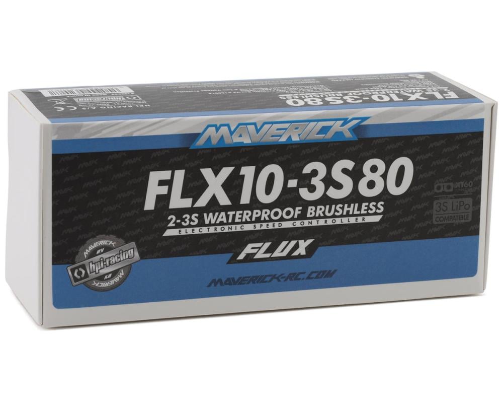 Maverick FLX10-3S80 Flux 1/10 Brushless ESC with XT60 Connector. This is a replacement ESC intended for use in the Maverick 1/10 Quantum Flux 80A MT and XT vehicles, and the Maverick Quantum2 Flux Brushless 1/10 4WD platforms. This ESC is the perfect match for Maverick's MM-3660-BL 3300KV 1/10th scale brushless motor (MVK150168) available separately. The FLX10-3S80 is able to pump 80 amps of power to the motor and is equipped with complete water-resistant protection. A large cooling fan sits on top of the case inside of a protective cover to keep things from overheating during intense operation. This ESC is the perfect blend of performance, durability, and ease of use.
