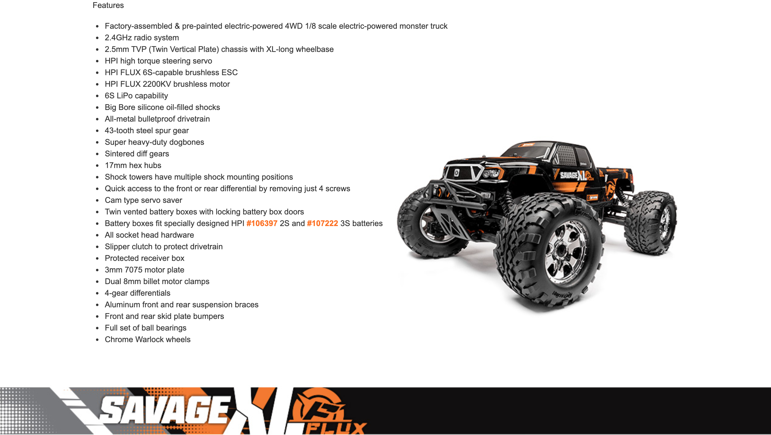 1/8th scale Monster Truck with 2.4GHz radio and Painted GT-2 Truck Body