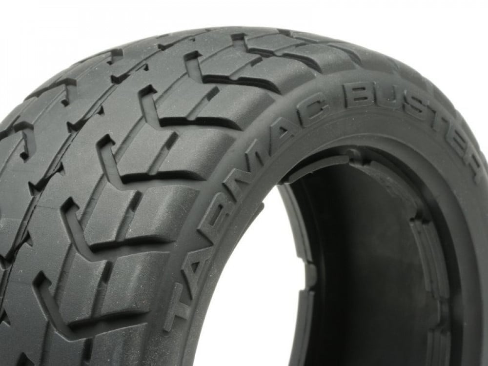 Get ready for the tarmac terror! Equip your Baja 5B buggy with front and rear Tarmac Buster tyres for running on any paved surface! With great racing looks and a smooth, 'shaved' appearance, the Tarmac Busters not only look amazing on the Baja, they provide amazing performace as well! Be the envy of your racing buddies with the Baja Tarmac Busters!