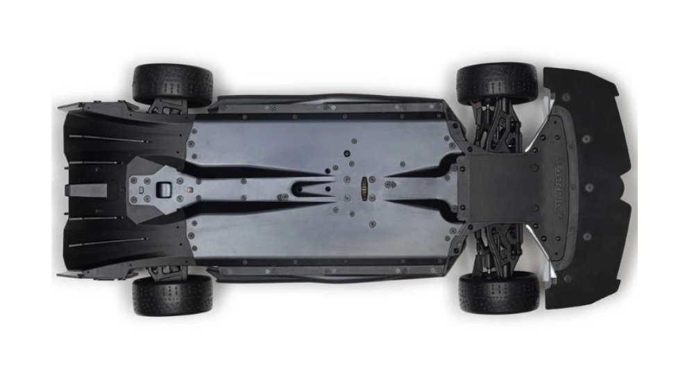 يتميز هيكل من الألمنيوم المؤكسد بسماكة 3 ملم، مع دعامة مركزية لتعزيز التحمل وتحمل ضغط سرعات تتجاوز 120 ميل في الساعة. مُعدّ لتحقيق أقصى أداء عند استخدام بطاريات 8S، يحتوي نظام النقل على تروس من نوع EXB مع مخارج تروس معدنية وداخلية علبة التروس عالية التحمل. بيسلون مود 1.0 بقطر 34T، يُرفَق مع عمود قيادة خلفي مركزي مدعوم bearing لتقليل الاهتزاز. نوابض أمامية صلبة و قضيب موازنة يعززان السيطرة عند السرعات العالية، وتزيد عرضية الخلفية الواسعة من الثبات.