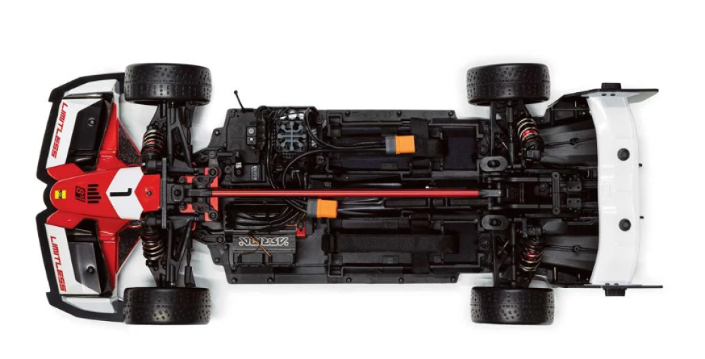 يتميز هيكل من الألمنيوم المؤكسد بسماكة 3 ملم، مع دعامة مركزية لتعزيز التحمل وتحمل ضغط سرعات تتجاوز 120 ميل في الساعة. مُعدّ لتحقيق أقصى أداء عند استخدام بطاريات 8S، يحتوي نظام النقل على تروس من نوع EXB مع مخارج تروس معدنية وداخلية علبة التروس عالية التحمل. بيسلون مود 1.0 بقطر 34T، يُرفَق مع عمود قيادة خلفي مركزي مدعوم bearing لتقليل الاهتزاز. نوابض أمامية صلبة و قضيب موازنة يعززان السيطرة عند السرعات العالية، وتزيد عرضية الخلفية الواسعة من الثبات.