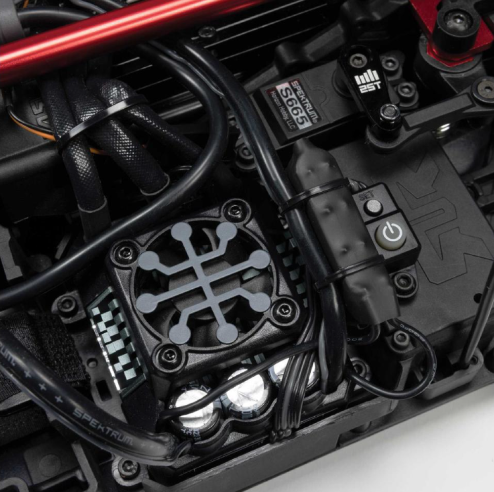مكونات إلكترونية عالية الجودة من شركة Spektrum مُثَبّتة من المصنع، جاهزة للاستخدام مع بطاريات ليبو 6S أو 8S. تحتوي على مخزن طاقة Firma 160A Smart V2 مع موصل IC5، ومحرك بدون فرشاة بقوة 1450Kv مزود بمبدد حرارة ومراوح تبريد مزدوجة. كما تشمل خدمة التوجيه الرقمية من نوع Spektrum S665 بترس فولاذي، وجميع المكونات مقاومة للماء لمغامرات خالية من القلق. يمكن عبر جهاز التحكم عن بعد DX3 2.4GHz تحديد الحد الأقصى للسرعة إلى 50% أو 75%، حتى تكون جاهزًا للتحكم الكامل عند الحاجة.