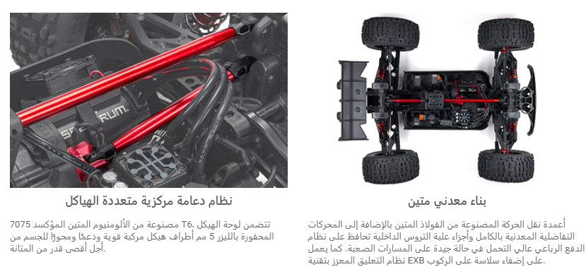 يضيف دعامة الجسم المركزية ودعامات مركزية من الألومنيوم وجوانب هيكل مركبة مزيدًا من القوة. توفر المحركات الخارجية المعدنية بالكامل وأجزاء علبة التروس الداخلية، بالإضافة إلى أعمدة الدفع الفولاذية المتينة، مجموعة نقل حركة موثوقة وعالية التحمل تتحمل العمل الشاق.