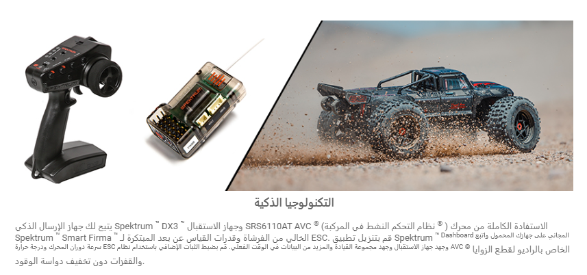 يتميز نظام Spektrum ™ 8S الجديد الخالي من الفرش، القوي والقوي، بمحرك 5687 FIRMA ™ 1100Kv الخالي من الفرش بقطر ضخم يبلغ 56 مم وعزم دوران أكبر بنسبة 10% من OUTCAST ™ 8S RTR السابق. يقترن المحرك الجديد بسيرفو تروس فولاذي Spektrum ™ S6510 الذي يولد 820 أونصة من عزم الدوران عند 8.4 فولت - أي ما يقرب من 50% أكثر قوة من سابقه. تتضمن حزمة RTR الجديدة أيضًا Spektrum ™ FIRMA ™ 160A V2 Smart ESC ونظام راديو Spektrum ™ DX3 3-channel 2.4GHz DSMR، مع تقنية Spektrum AVC المدمجة للحفاظ على الطاقة الهائلة تحت السيطرة.