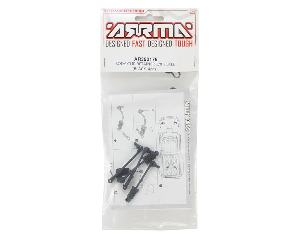 ARAC3447 OR AR390178 Body Clip Retainer 1/8 Scale Black (4)