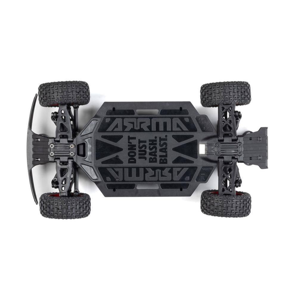 You’ll find everything you need to run the MOJAVE GROM inside the box. ARRMA upgrade parts are also available to expand its capabilities, including the alloy axle and wheel hub assembly (ARA311231), aluminum shock assembly (ARA-1567), adjustable steering links (ARA340217), and a two-piece oil-filled differential assembly (ARA311193).