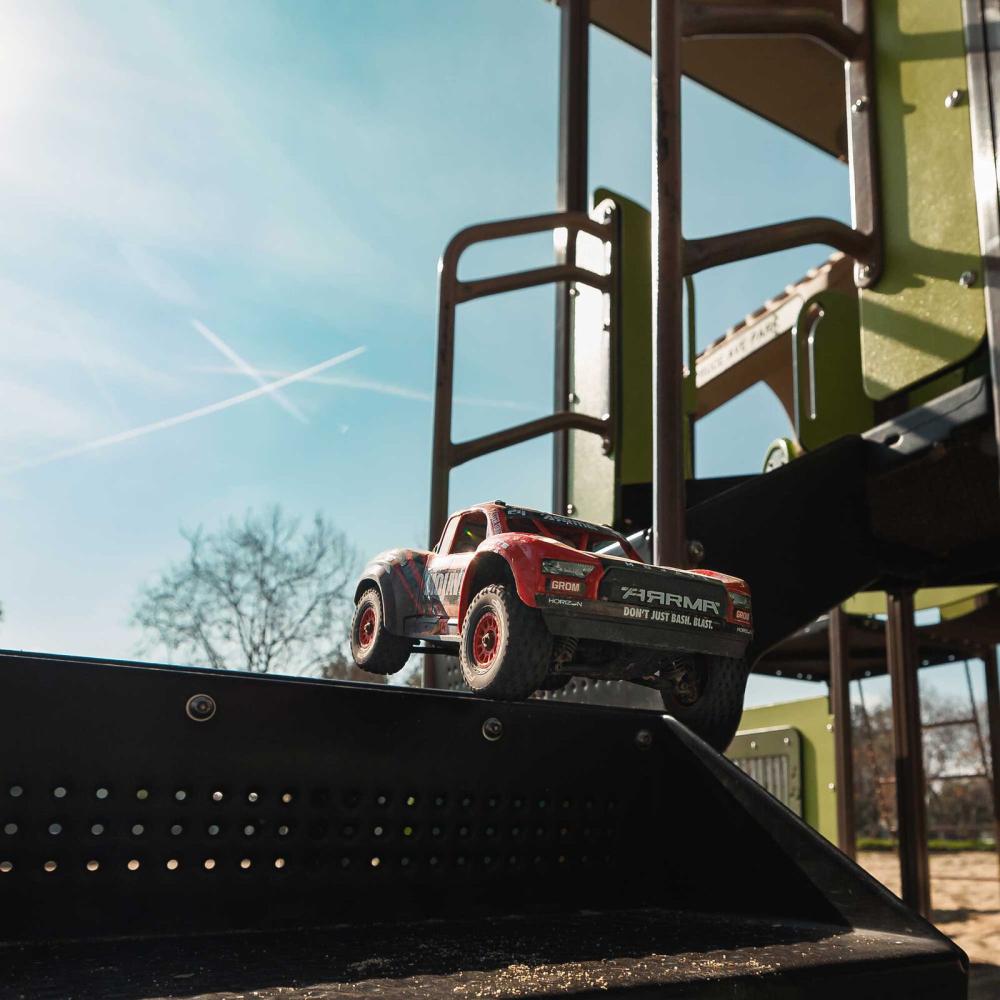 Whether indoors or out, the MOJAVE GROM goes places that larger RC desert trucks can’t. It’s still built to the same high standards as other ARRMA vehicles. No compromises have been made when it comes to downsizing. With easy handling and solidity, you can be as aggressive as you want when sending the MOJAVE GROM through corners and over jumps.
