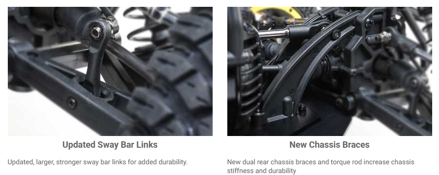 The center drive cups have been redesigned so that they are now a captured ring design like the 5IVE-T, reducing the chances of drivetrain failures.