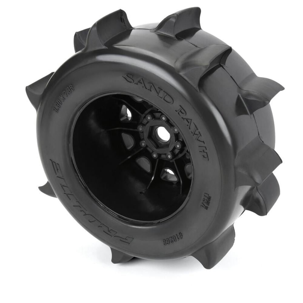 Take your 1/8 scale Monster Truck like the ARRMA Kraton 6S or Traxxas MAXX and E-REVO® to the next level of performance in sand or snow with Pro-Line's innovative Sand Paw HP BELTED tires , which combine a split-paddle braided design with BELTED belt technology to prevent tire stretching and ensure maximum strength and stability while driving. 💪🔥