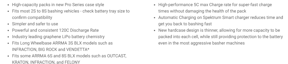 Spektrum Smart G2 Pro Basher LiPo Battery Features