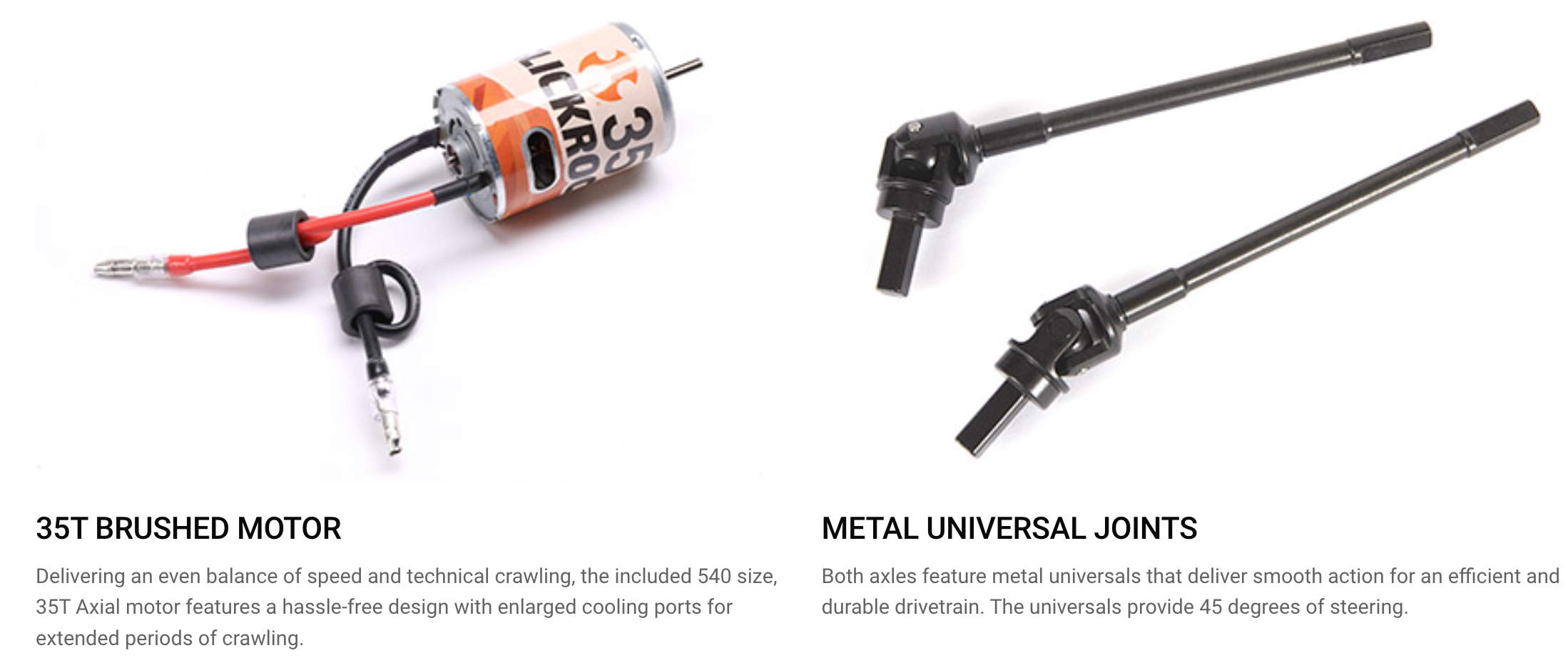 - ⚙️ Axial 540 Brushed Motor: Smooth and powerful for crawling