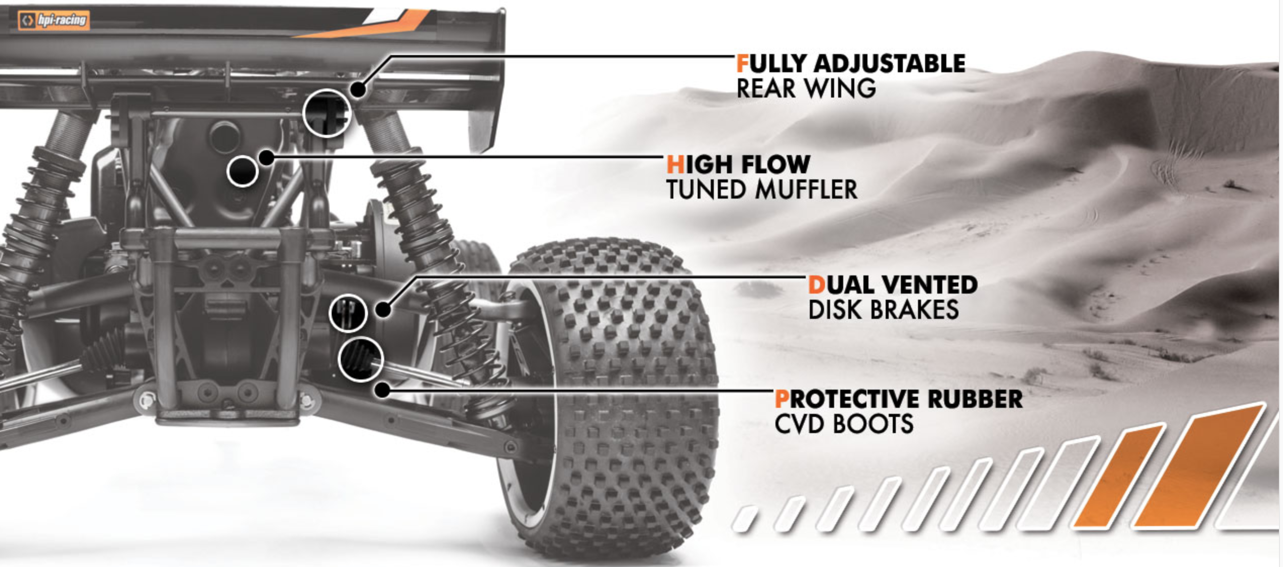 - Dampers with an oil pressure system maintain the car's balance with the ability to control the car's rise and fall
