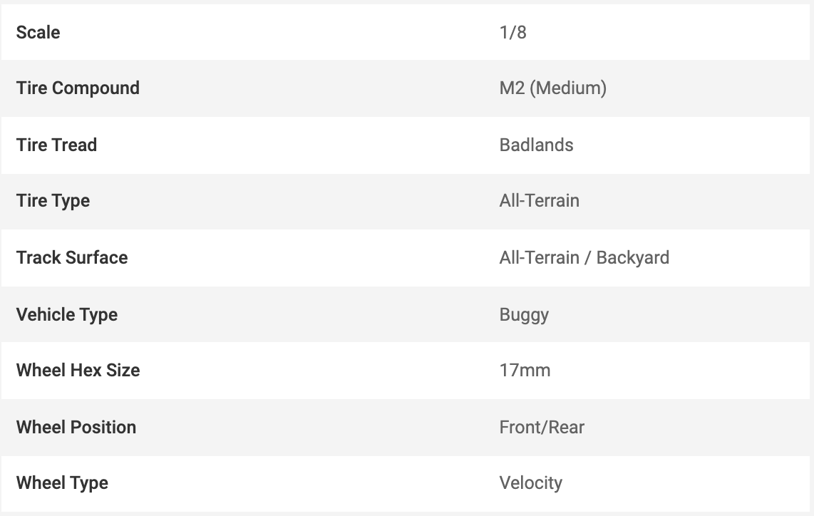 Now these iconic Badlands MX Tire is Pre-mounted on Velocity Black Wheels so you don't have to worry about gluing your own tires or waiting for them to dry. All you need to do is slap them on your buggy and get to ripping up the dirt! Be the first on your block to get the all-new Badlands MX tires - Order yours today!